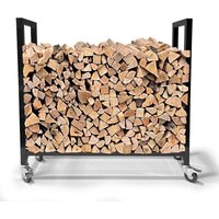 Quick Star – Leñero 90 x 25 x 90 cm con ruedas galvanizadas por dentro y por fuera, leñero metálico móvil almacenamiento de leña ayuda a apilar