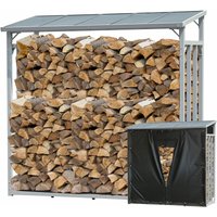 Quick Star – Estante para leña de Chimenea, Metal, Antracita, 272 x 25 x 95 cm, para jardín, leña, 1,0 m3, para apilar, Exterior con Funda, Gris