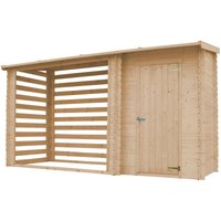 Caseta de jardín con leñero de madera – exteriores 348 x 146 x H199 cm – casita de madera 1,1 m2 – leñero 3,8 m3 – leñero exterior con caseta de