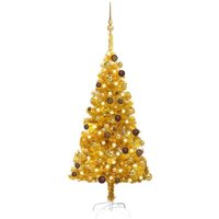 ¡Este árbol de Navidad artificial dorado forma la llamativa pieza central de tus adornos navideños, creando un ambiente navideño único! Este bonito árbol de Navidad, hecho de material PET, es muy realista en su forma y apariencia. Las patas de acero incrementan su estabilidad. Decoración festiva económica: el árbol de Navidad se puede usar nuevamente cada año, lo que lo convierte en una opción muy económica en comparación con un árbol real. Con luces LED de bajo consumo, se ilumina maravillosamente y crea un acogedor ambiente festivo. Es más, decorado con el hermoso pico y las bolas, este árbol navideño será muy llamativo en tu hogar. Nota:El producto tiene un conector USB, pero no se incluye la fuente de alimentación USB de 5 V certificada. Color del árbol: Dorado Color de la bola: Dorado brillante, dorado mate y bronce Material: PET, acero, plástico Altura total: 120 cm Diámetro del árbol: 65 cm Largo de la tira de luz LED: 15 m Voltaje: DC 5 V Potencia: 5 W Con 230 puntas Con 150