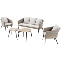 Características técnicas: Número de plazas: 10 (6 sillas y 4 taburetes) Tipo de salón de jardín: Comedor Color principal: Marrón Color secundario: Blanco Forma de la mesa: Rectangular Material: Ratán trenzado (PE) Material del tablero de la mesa: Vidrio (encastrado en la mesa) Estructura: Metal Respaldo abatible: Sí Con cojín: Sí Número de cojines: 10 Color de los cojines: Gris Material de los cojines: Poliéster Cojines desmontables: Sí Con cremallera: Sí Número de capas de espuma: 1 Peso máximo soportado por la mesa: 85 kg Peso máximo soportado por la silla: 150 kg Peso máximo soportado por el taburete: 100 kg Encastrable: Sí Mantenimiento: Retire regularmente el polvo con un paño seco. Limpie y seque con un paño húmedo. Proteja sus muebles cubriéndolos durante los meses de invierno o cuando no se utilicen durante largos períodos. Use posavasos para bebidas calientes, no coloque vasos directamente sobre la mesa para evitar que el efecto lupa derrita el poliwood. También puede lavar
