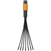 Rastrilla hojas muertas, recortes de césped y otra vegetación en espacios reducidos. Diseño con cuerpo de fibra de vidrio (FiberComp) y siete dientes de acero. 12,5 cm ancho de trabajo: ideal para espacios reducidos. Para uso con mangos de 24 cm y 84 cm. Longitud: 320 mm