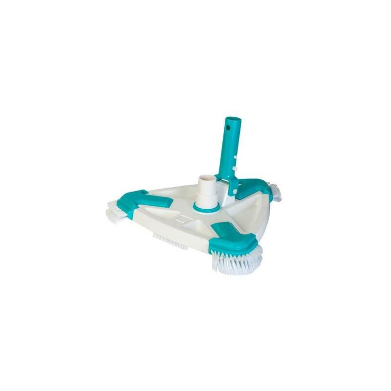 Cabezal de limpiafondos triangular rotativo. Contiene cepillos inferiores y laterales permite una mayor limpieza en �ngulos y esquinas. Ofrece un mantenimiento r�pido y econ�mico de la piscina. Resistente y eficaz en las tareas cotidianas del mantenimiento. Ayuda a limpiar el fondo de la piscina. Tiene una conexi�n a manguera de aspiraci�n de �32 mm � �38mm. La manguera, conectada al skimmer o a la toma de aspiraci�n, permite aspirar los residuos hasta la depuradora. Se adapta a cualquier mango telesc�pico con sistema de conexi�n de clip. Recomendable utilizar cepillos de vez en cuando para asegurar la limpieza de todas las zonas. Color: verde y blanco. Gama: Gama Confort. Medida: 31 x 31 x 19 cm