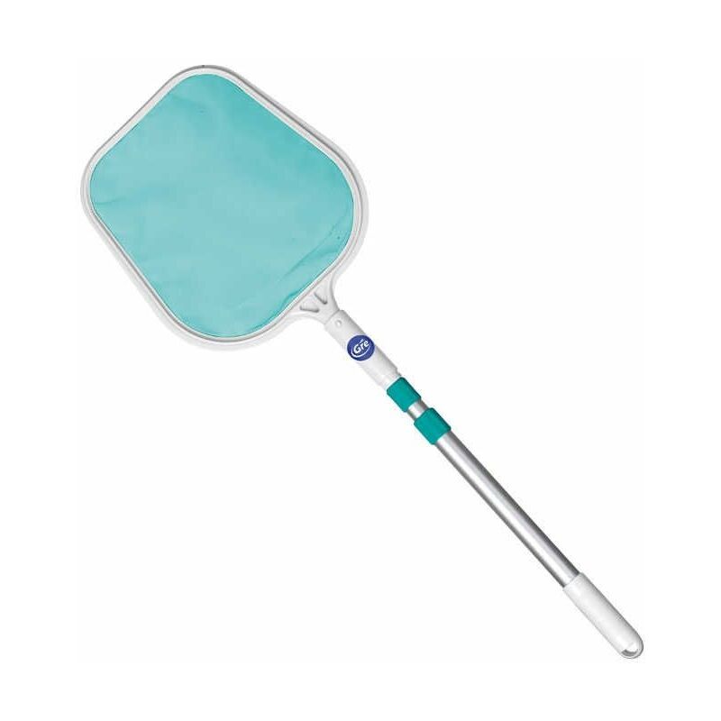 Para la recogida de todo tipo de suciedad que se mantiene flotante en la superficie de la piscina. Malla de diseño plano muy resistente e ideal para limpiar la superficie de la piscina. Mango telescópico extensible Medidas Plegado: 95×29,5 cm Ø 3 cm Desplegado: 159×29,5cm Ø 3 cm