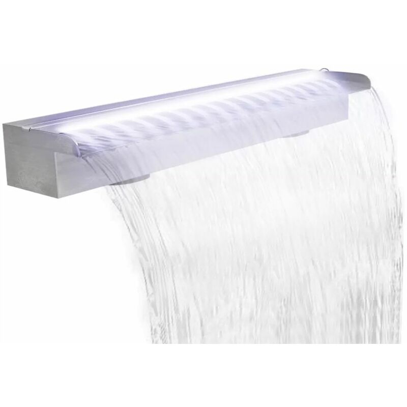 Descripción Esta fuente para piscina será un añadido decorativo para su piscina o estanque, y le hará disfrutar de los relajantes sonidos del agua, aportándole una sensación de calma y bienestar. Está específicamente diseñado para garantizar un flujo constante de agua uniforme. Hecho de acero inoxidable de alta calidad, es resistente al cloro y al agua salada, y por lo tanto muy duradero. La cascada tiene luces LED, para lo cual el enchufe está incluido en la entrega. El montaje es bastante fácil. ¡Consiga ahora una y disfrute del relajante sonido y vista del agua corriente! Tenga en cuenta que la bomba no está incluida. Especificaciones: Material: Acero inoxidable SS 304 Tamaño total: 120 x 11,5 x 8 cm (anchura x profundidad x altura) Número de bombillas LED: 69 Color del LED: Blanco Tensión/frecuencia: 230-240 V/50 Hz Potencia: 6,9 W Longitud del cable: 5 m Con un enchufe Con 2 conectores en la parte inferior