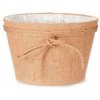 Macetero tela saco lazo 18 x 16 cm.-Fabricado en material natural.-Incluye forro interior para mejor utilización.-Medidas: 18 x 18 x 16 cm.