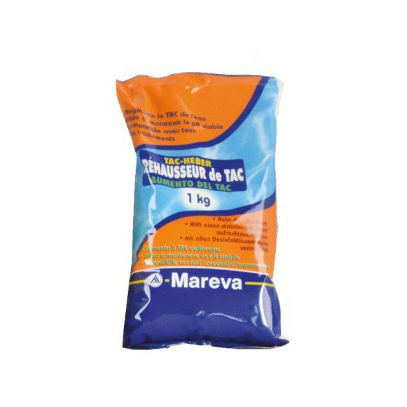 Overview : Presentación : MAREVA TAC booster en polvo ecodose TAC Plus para piscina – 1Kg – 020023U o uno de los elementos esenciales para obtener una piscina limpia. El TAC (contenido total de alcalinidad) representa la alcalinidad del agua de su piscina. Es uno de los parámetros esenciales a comprobar para asegurar el equilibrio del agua, junto con el pH. El pH y el TAC deben medirse y reequilibrarse siempre de forma simultánea, ya que cuando uno de estos parámetros varía, el otro también lo hace. Este producto es ideal si su TAC es demasiado bajo y, en consecuencia, su pH es demasiado bajo y su agua es ácida. Si su pH sólo varía, la adición de TAC también evitará variaciones significativas del pH. Compruebe regularmente el nivel de TAC, por ejemplo, con tiras reactivas de color o con un comprobador de TAC para piscinas. El valor ideal de TAC está entre 12° y 16° F o entre 80 y 140 mg/l. Por favor, añada 100 g por 10m³ para aumentar el valor en 0,1, gradualmente. (Vierta un máximo