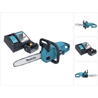 Contenido de la entrega : – 1x motosierra sin cable Makita DUC 307 – 1x barra guía 191G15-1 – 1x cadena de motosierra 191H01-8 – 1x aceite para motosierra 100 ml 199897-3 – 1x protector de cadena 413G23-5 – 1x batería Makita BL 1840 B 18 V 4,0 Ah – 1x cargador rápido Makita DC 18 RC 7.2 V – 18 V Descripción del producto : La compañera ideal para trabajos de jardinería y mucho más: la motosierra sin cable con una longitud de hoja de 30 cm es compacta y ligera, pero extremadamente potente. Con una potencia de salida de 610 W y una velocidad de cadena de 7,7 m/s, la motosierra alcanza un gran volumen de trabajo. El nuevo mecanismo de reducción mantiene constante la velocidad de la cadena. La batería de 18 V y el motor sin escobillas y exento de mantenimiento garantizan una gran potencia y una larga vida útil. El freno de contragolpe y el freno eléctrico garantizan una seguridad de trabajo aún mayor. La protección contra descarga profunda desconecta automáticamente la máquina cuando la