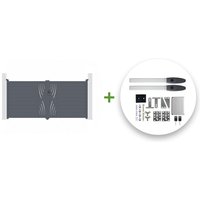 La puerta batiente exterior NEVIS, con su diseño sencillo y clásico, es el compromiso perfecto entre una puerta batiente calada y una puerta batiente ciega. Este puerta abatible mixta con barrotes horizontales le permitirá combinar luminosidad e intimidad gracias a zona formada por barrotes en la parte superior et una zona ciega de aluminio en la parte inferior. Descripción: Puerta batiente exterior mixta con barrotes horizontales, dos hojas Material : Aluminio Color : Gris antracita (RAL 7016) Tamaño : Anchura 397cm x Altura 143cm Ancho requerido entre pilares : 402cm Altura mínima del pilar : 160cm Inspirado y diseñado en Francia Este kit de puerta batiente mixta para montar e instalar por ti mismo contiene : – 4 barrotes de aluminio (Anchura 7.8cm) – 24 lamas con recubrimiento en polvo (Altura 15.5 cm) – 2 bisagras superiores – 2 bisagras inferiores – 1 tope central – 2 topes final de carrera – 1 cerradura de cilindro – 1 manilla (Color Negro) – 5 Llaves – Tapas de acabado