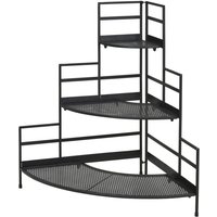 ¡Decora el jardín con tus flores y plantas favoritas con esta estantería rinconera de 3 niveles de ProGarden! El soporte para flores de 3 niveles mide 85 cm de altura, y cada piso consta de una malla para que el agua no se quede estancada después del riego. Al colocar plantas y flores a diferentes alturas, crearás un efecto divertido. La estantería metálica para plantas es robusta y práctica, por lo que es adecuada para usar al aire libre. ¡Coloca tus preciosas plantas sobre este soporte para alegrar el jardín! Color: Negro Material: Metal Dimensiones: 84 x 60 x 85 cm (largo x ancho x alto) 3 niveles de malla Diseño rinconero