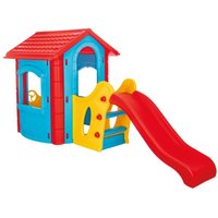 Regala a tus hijos esta caseta y disfruta de la tranquilidad de un juego seguro. Las casetas infantiles son la mejor opción para que los más pequeños disfruten en un entorno lúdico y sin peligros. Su diseño amplio y ergonómico (LxPxH: 112x252x131 cm) fabricado en plástico de alta calidad la hacen ideal para ser utilizada tanto en interior como en exterior, además su montaje es sencillo y no requiere de herramientas. La HAPPY HOUSE WITH SLIDE es un modelo en azul, rojo y amarillo, que incluye una puerta abatible y unas escaleras que conducen a un divertido tobogán con el que todos los niños lo pasarán en grande.