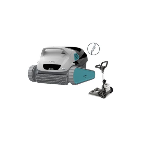 El robot CYCLONE 100 es ideal para la limpieza automática del suelo de piscinas de hasta 20 m2 (no sube escaleras ni paredes). Con un diseño compacto y ligero, permite transportarlo sin esfuerzo dentro y fuera de la piscina. Equipado con una batería de litio de 2.000 mAh y de 7,4V, ofrece una autonomía de trabajo de 45min (5-6 horas de carga). Gracias a su sensor de agua, el motor se activará solo cuando entre en contacto con el agua. Una vez sumergido, se desplazará por todo el fondo de la piscina para dejarlo impoluto. Dispone del sistema stop & go, que consiste en la rotación del cabezal al detectar algún obstáculo para reprender la ruta de limpieza. Otro aspecto a destacar es su espacioso compartimiento de fácil limpieza, que permite atrapar una gran cantidad de residuos en su malla textil.